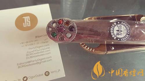 如果說雪茄裹上金箔還能有助于煙灰的保持,同時冷卻煙灰。那么雪茄上鑲嵌寶石對抽雪茄本身就沒有任何一點用處了,除了炫耀也想不出其他價值了。