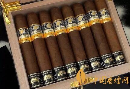 高希霸生肖雪茄并非特制的雪茄,使用的是醇化數(shù)年的量產(chǎn)雪茄,例如去年的高希霸狗年魔術(shù)師使用的是老標(biāo)的高希霸魔術(shù)師,今年的高希霸羅布圖同樣使用醇化數(shù)年的雪茄。雪茄尺寸是50環(huán)徑,4.7英寸,今年的發(fā)行量是3000盒。雪茄有兩個煙標(biāo),一個是高希霸的標(biāo)準(zhǔn)煙標(biāo),一個是帶有中國生肖豬年標(biāo)識的腳標(biāo),雪茄盒子也是特制的,黑色漆盒右下角有一個豬的標(biāo)識。
