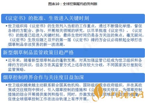 據(jù)國(guó)家局、北京市局(公司)、福建中煙、國(guó)家局經(jīng)濟(jì)研究所共同發(fā)布的《2017年世界控?zé)熉募s進(jìn)展報(bào)告》判斷,目前《議定書》的批準(zhǔn)和生效已經(jīng)入關(guān)鍵時(shí)刻,未來(lái)新型煙草制品監(jiān)管政策將日趨嚴(yán)格。