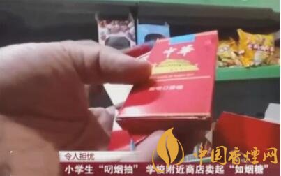學(xué)校附近賣如煙糖 小學(xué)生模仿大人抽煙