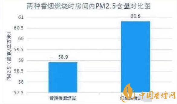 實(shí)驗(yàn)結(jié)果表明細(xì)支煙與粗煙危害對比,粗桿煙燃燒后,室內(nèi)PM2.5含量為58.9(微克/立方米),細(xì)桿煙燃燒后,室內(nèi)PM2.5含量為60.8(微克/立方米),均比點(diǎn)燃香煙之前有明顯提升。而且,細(xì)桿煙所釋放的煙草煙霧濃度,略高于粗桿香煙。也就是說,號稱“低焦油香煙”的細(xì)桿煙,燃燒后所釋放的有害物質(zhì)不低于粗桿香煙,甚至有些數(shù)據(jù)還會略高一些。#p#副標(biāo)題#e#