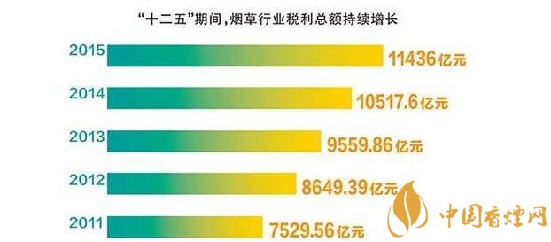 就“十二五”期間,煙草行業(yè)稅利占國(guó)家財(cái)政收入的比重保持平穩(wěn),始終保持在7.2%~7.5%的較高水平。五年上繳財(cái)政總額4.13萬(wàn)億元,年均增長(zhǎng)17.5%,比同期全國(guó)財(cái)政收入年均增長(zhǎng)率高4.7個(gè)百分點(diǎn)。2015年,在經(jīng)濟(jì)下行壓力持續(xù)加大的情況下,煙草行業(yè)為國(guó)家財(cái)政增收做出了更大貢獻(xiàn),充分體現(xiàn)了國(guó)家財(cái)政收入“蓄水池”的功能。