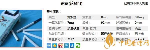 南京南京卷煙是江蘇中煙南京卷煙廠的代表品牌,其中南京香煙就是由細(xì)支香煙而聞名于全國的,在國內(nèi)也是數(shù)一數(shù)二的香煙品牌,非常受人歡迎,那么在對煊赫門香煙價(jià)格表分析之前,先來看一看2018煊赫門多少錢一包,這款香煙的售價(jià)為16元/包。