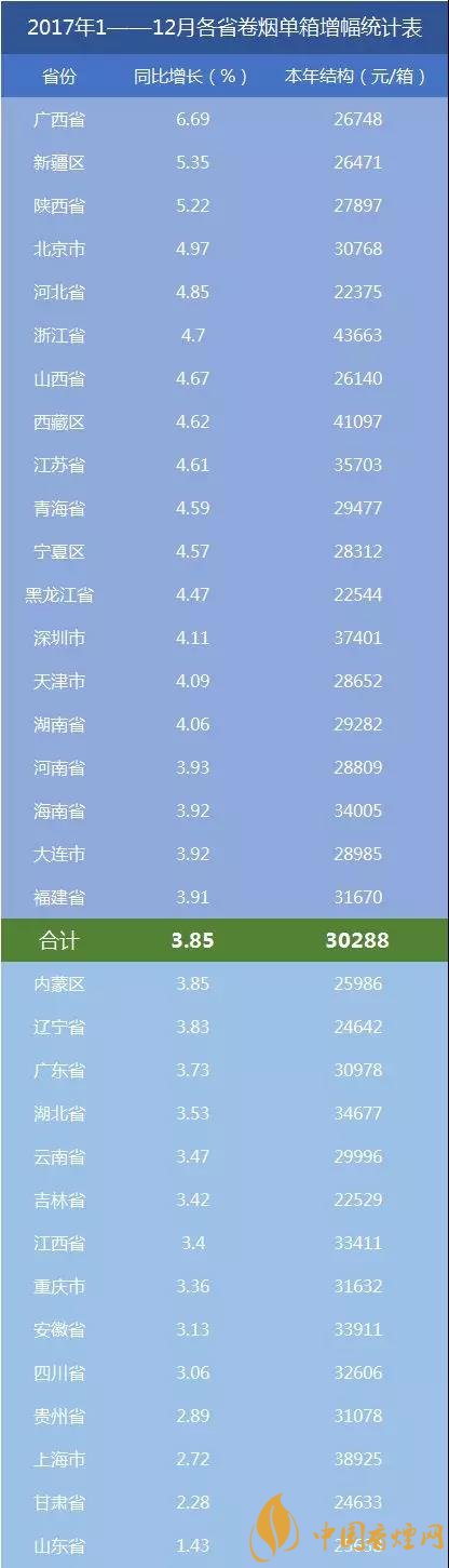 最新全國(guó)卷煙消費(fèi)水平,雖然很多地區(qū)的卷煙單箱結(jié)構(gòu)可能低于全國(guó)水平,但是在“提結(jié)構(gòu)”上的努力也是不容忽視的。#p#副標(biāo)題#e#