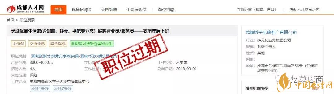 此外成都長(zhǎng)城優(yōu)品生活館,他們正在招聘廚師要求具備中/西式制作經(jīng)驗(yàn)。
