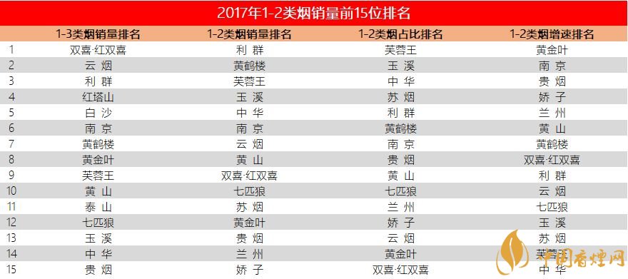 前面為大家介紹過2017雙15煙草品牌市場綜述 理性回顧2017卷煙銷售成績單。還原到市場上,就是二類煙正在并仍將不斷地基座化、大眾化和普及化。如果如果用一二類煙來排名雙15品牌會是個(gè)社呢么情況呢?小編人為無疑更具參考性和說服力,大家覺得呢?下面香煙網(wǎng)小編為大家整理介紹。