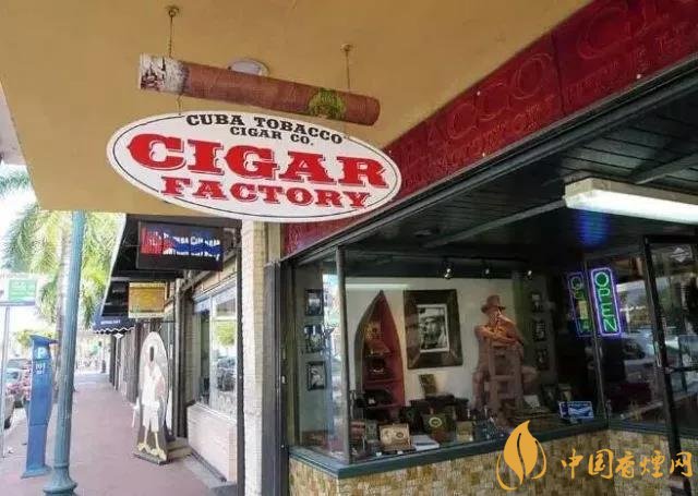 美國邁阿密小哈瓦那的雪茄店,一支碩大的雪茄煙懸掛在店鋪前廊,店招下掛白點紅色店名,很是別致。