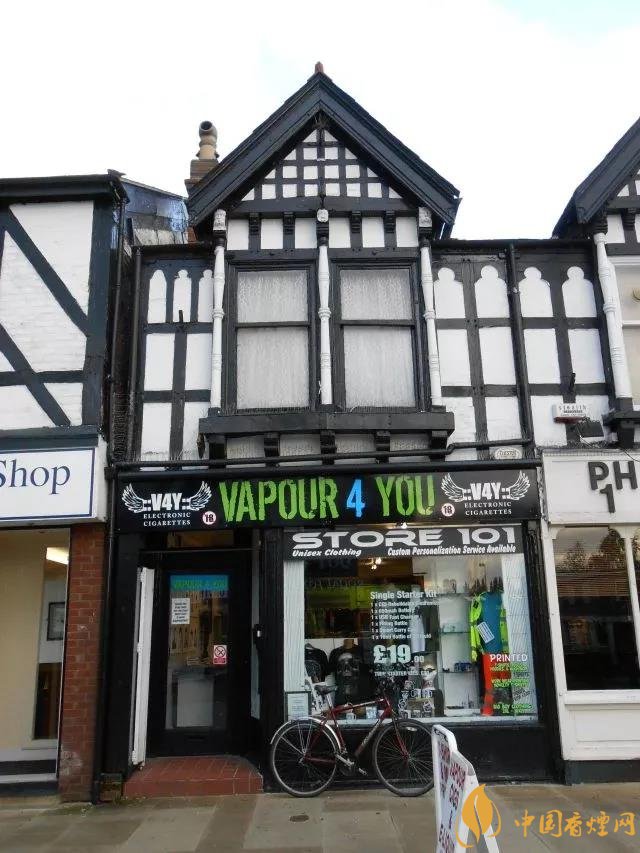 英國柴郡的蒸汽煙店,點名以“4”,代替同音的“for”,卷煙零售店怎么樣?古典的店面下給人一種調(diào)皮的感覺,很符合其主營電子煙產(chǎn)品的經(jīng)營內(nèi)容。