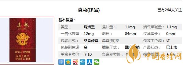真龍牌香煙是廣西中煙的代表品牌,與2001年創(chuàng)立,是國內(nèi)唯一一個能夠?qū)崿F(xiàn)三點完美兼容的烤煙型香煙品牌,那么真龍珍品多少錢一包,現(xiàn)在就由香煙網(wǎng)小編為大家介紹一下真龍珍品香煙價格圖片。
