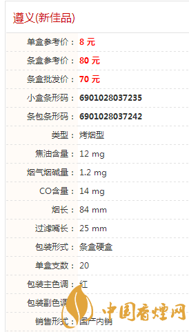 遵義(新佳品)香煙為遵義品牌旗下的一款香煙。佳品“遵義”是遵義集團新開發(fā)的遵義系列產品之一。該產品選用國內外不同類型,不同地區(qū),不同年限的優(yōu)質煙葉原料,借助先進的理化分析手段和致香物質研究成果,經過多次精心試制開發(fā)而成。 該產品香氣清雅飄逸,豐滿諧調,余味純凈。給人以優(yōu)美舒適的感覺。