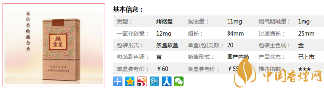 為進(jìn)一步強(qiáng)化“金圣”的品牌特征,江西中煙將他們自主研發(fā)的第三代“金圣香”(中草藥添加劑)運(yùn)用于“金圣”(典藏·本草香)的配方中,煙氣更加飽滿協(xié)調(diào)、更具層次感。下面我們一起來(lái)看看它的參數(shù)信息:焦油量11mg,煙堿量1mg,一氧化碳量12mg.