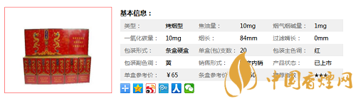 | 類(lèi)型 :烤煙型 | 焦油量 :10mg | 煙氣煙堿量 :1mg | 一氧化碳量 :10mg |