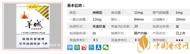 羊城軟白選用國(guó)內(nèi)外優(yōu)質(zhì)烤煙煙葉和白肋煙煙葉,具有典型美式混合型卷煙的香味風(fēng)格,香氣豐富而協(xié)調(diào),煙氣飽滿順暢,余味較舒適。下面我們一起來看看羊城軟白的參數(shù)信息:焦油量:11mg 煙堿量:1mg 一氧化碳量:12mg