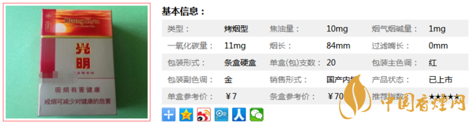 以上便是由香煙網(wǎng)小編為大家介紹的關(guān)于黃山金光明價格及參數(shù) 60年代老牌香煙的相關(guān)信息,想要了解更多有關(guān)內(nèi)容請點擊:光明金世紀香煙多少錢一包 光明金世紀香煙口感評測