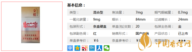 金橋硬的焦油為8mg,基本符合現(xiàn)在國際混合煙品的走向。同樣為8mg的焦油,同樣為6塊的價格,硬金橋幾乎沒有對手,這也造就了它,為什么那么受歡迎的原因。下面我們一起來看金橋硬的參數(shù)信息:焦油量:7mg. 煙堿量:0.7mg. 一氧化碳量:9mg.