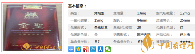 金圣東方香煙選用云南高原優(yōu)質煙葉,結合世界最著名煙葉產區(qū)津巴布韋名貴煙葉,經天然山洞窖藏三年以上,配以美國進口香精香料,經國內著名煙草配方師歷時兩年研制而成。下面我們一起來看金圣東方的參數信息:焦油量:13mg. 煙堿量:1.2mg. 一氧化碳量:15mg.