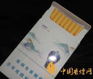 古瓷細支以君子雅興,做最美煙包。遠看山巒交錯,云??澙@;近賞元、清兩代珍品瓷器。在“瓷中有山水,天地無限大”的詩情畫意中品味古瓷細支,讓觀者心情徜徉于綠水青山間。嘴部幽藍色的古瓷二字和淡淡的山水圖案交相輝映。