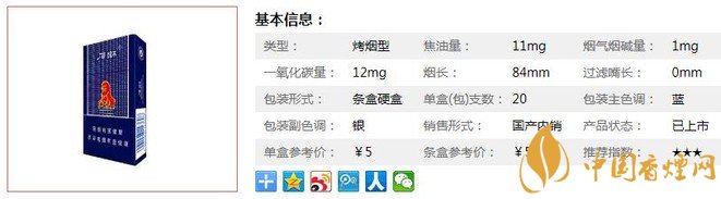 | 類(lèi)型 :烤煙型 | 焦油量 :11mg | 煙氣煙堿量 :1mg | 一氧化碳量 :12mg |