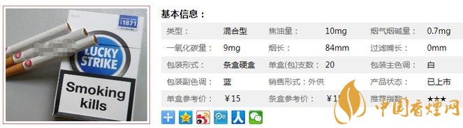 三、好彩藍(lán)香煙參數(shù)
