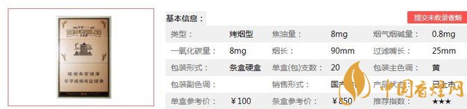 | 類(lèi)型 :烤煙型 | 焦油量 :8mg | 煙氣煙堿量 :0.8mg | 一氧化碳量 :8mg |