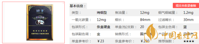 三、嬌子國(guó)寶藍(lán)天嬌香煙參數(shù)