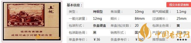 | 類型 :烤煙型 | 焦油量 :10mg | 煙氣煙堿量 :1.1mg | 一氧化碳量 :12mg |
