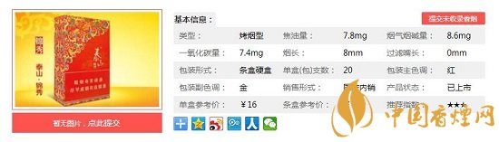 泰山錦秀在產(chǎn)品命名上突破“喜”字局限,取名為“錦秀”,一方面“錦秀”這個(gè)名字與“錦繡”同音,具有“錦繡”的美好寓意,如錦繡良緣、美滿姻緣、幸福婚姻等,另一方面“錦秀”這個(gè)名字又與泰山高大巍峨的氣勢(shì)和神奇秀麗的景色積極聯(lián)系在一起。經(jīng)香煙網(wǎng)小編市場(chǎng)調(diào)查其價(jià)格為16元/包。