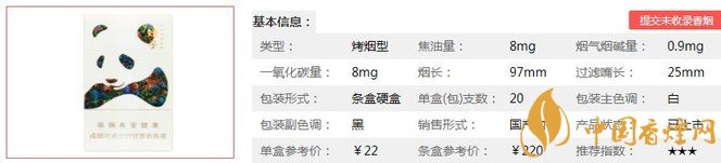 “2014 Pentawards全球頂級包裝設(shè)計(jì)大賽”金獎包裝作品,中細(xì)煙支設(shè)計(jì)彰顯優(yōu)雅與品位,山水云竹演繹的多彩熊貓,毛發(fā)纖毫畢現(xiàn)、雙目炯炯有神,絕妙創(chuàng)意與精湛技藝相得益彰。該煙在低焦里算是不錯的選擇,如果是喜歡抽的煙都很醇很烈就不推薦此煙了。