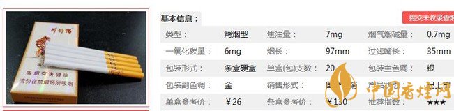 | 類(lèi)型 :烤煙型 | 焦油量 :7mg | 煙氣煙堿量 :0.7mg | 一氧化碳量 :6mg |