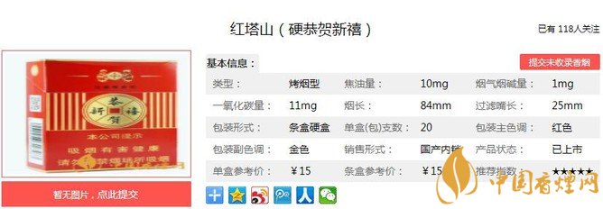 三、紅塔山硬恭賀新禧香煙參數(shù)