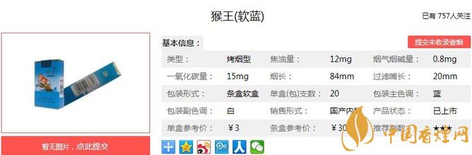 以上便是由香煙網(wǎng)小編為大家介紹的關(guān)于猴王軟藍(lán)價格及參數(shù) 陜西低價煙中的佼佼者的相關(guān)信息,想要了解更多有關(guān)內(nèi)容請點(diǎn)擊:猴王喜慶價格及參數(shù) 猴王喜慶獨(dú)家口感分析