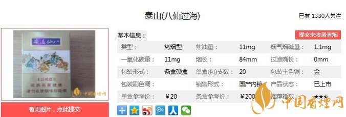泰山八仙過海口感和味道屬實挺好的,有股濃郁茶甜香的味道。加上煙盒與煙支的包裝設(shè)計,也有著自己的個性,算得上是一款性價比比較高的香煙,值得一抽。經(jīng)香煙網(wǎng)小編市場調(diào)查泰山八仙過海售價為20元/包。