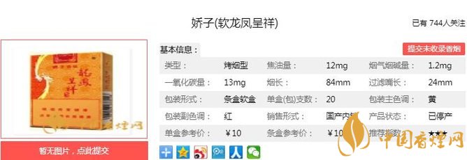 龍鳳呈祥經(jīng)典產(chǎn)品,嬌子新裝貴氣登場,品質(zhì)價格一脈相承。煙草本香透發(fā),煙氣細膩柔和,口感純凈舒適,回味綿長津甜,更特有紅茶香韻,淡雅怡然。經(jīng)香煙網(wǎng)小編市場調(diào)查嬌子軟龍鳳呈祥售價為10元/包。