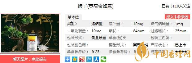 三、嬌子寬窄金如意香煙參數(shù)