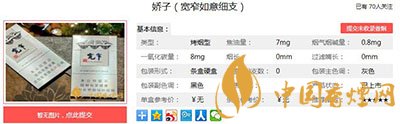 嬌子寬窄如意細(xì)支從煙支設(shè)計(jì)到吸味表現(xiàn)都相當(dāng)不錯(cuò),亮點(diǎn)非常多,低焦卻濃郁。下面我們一起來看嬌子寬窄如意細(xì)支的參數(shù)信息,焦油量:7mg 煙堿量:0.8mg 一氧化碳量:8mg。