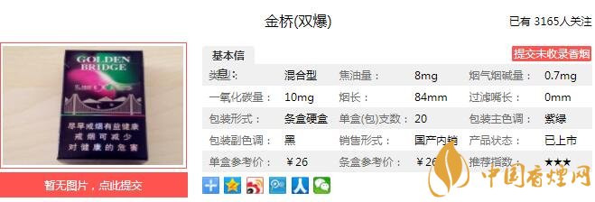 以上便是由香煙網(wǎng)小編為大家介紹的關(guān)于金橋雙爆價(jià)格及口感介紹 混合型雙爆珠性價(jià)比高的相關(guān)信息,想要了解更多有關(guān)內(nèi)容請(qǐng)點(diǎn)擊:嬌子傳奇天子口感分析 打造高端定制香煙價(jià)值標(biāo)桿