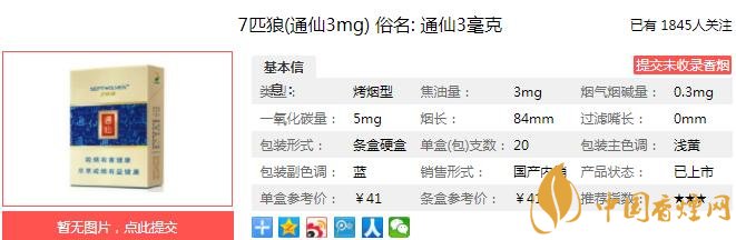 以上便是由香煙網(wǎng)小編為大家介紹的關(guān)于七匹狼通仙3mg多少錢一包 低焦留香滿足感強的相關(guān)信息,想要了解更多有關(guān)內(nèi)容請點擊:長白山8mg價格及參數(shù)介紹 長白山8mg獨家口感分析