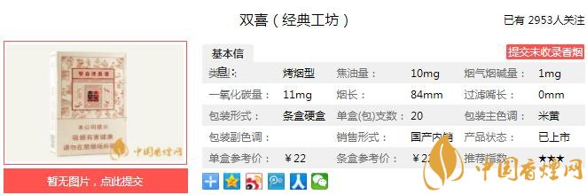 以上便是由香煙網(wǎng)小編為大家介紹的關(guān)于雙喜經(jīng)典工坊多少錢一包 雙喜經(jīng)典工坊口感及參數(shù)介紹的相關(guān)信息,想要了解更多有關(guān)內(nèi)容請(qǐng)點(diǎn)擊:七匹狼通仙3mg多少錢一包 低焦留香滿足感強(qiáng)