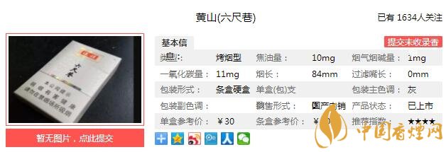 黃山六尺巷香煙多少錢一包 黃山六尺巷口感及參數(shù)介紹