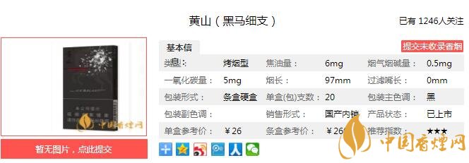 以上便是由香煙網(wǎng)小編為大家介紹的關(guān)于黃山黑馬細(xì)支多少錢一包 黃山最新細(xì)支香煙的相關(guān)信息,想要了解更多有關(guān)內(nèi)容請點(diǎn)擊:云煙軟珍紅鉆多少錢一包 云煙軟珍紅鉆口感分析