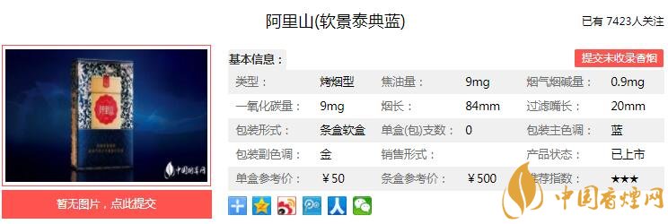 阿里山煙近幾年在國內(nèi)還是比較常見的,這款阿里山(軟景泰典藍(lán))屬于這個(gè)系列的高端產(chǎn)品,嚴(yán)格遵循全手工選葉,不添加其他填充物,用物理方法提取純天然植物香料,不添加任何化學(xué)合成香。經(jīng)香煙網(wǎng)小編市場(chǎng)調(diào)查阿里山軟景泰典藍(lán)售價(jià)為50元/包。