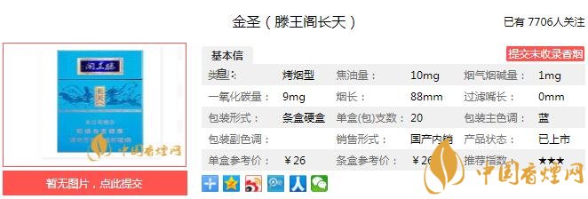 以上便是由香煙網小編為大家介紹的關于金圣滕王閣長天藍色價格 江西中煙首創(chuàng)干珠技術的相關信息,想要了解更多有關內容請點擊:貴煙玉液2號價格及口感 煙香與酒味的共同融合