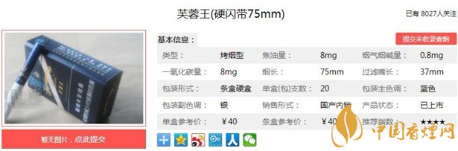 芙蓉王(硬閃帶75mm)是芙蓉王系列第一款短支卷煙,也是芙蓉王第一款小盒八角包裝產(chǎn)品。精悍短小的身材,給煙民朋友留下了深刻的影響,畢竟在煙草市場當中,這樣尺寸的香煙,還是不多的。但也正是這樣,以及價格因素導致買過此款香煙朋友的回頭的幾率并不是很大。下面跟著香煙網(wǎng)小編一起來了解芙蓉王(硬閃帶75mm)的相關信息吧。