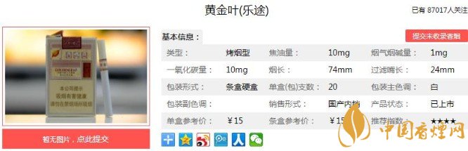 黃金葉(樂途)雖然是短支香煙,但是煙氣飽滿,煙草本香濃郁。加上包裝精美,以及黃金葉自身的品牌優(yōu)勢,現(xiàn)在的名氣已經(jīng)算是比較高的了。下面跟著香煙網(wǎng)小編一起來了解黃金葉(樂途)的相關(guān)信息吧。