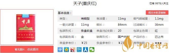 以上便是香煙網(wǎng)小編為大家介紹的關(guān)于地道重慶味的香煙,天子(重慶紅)價(jià)格在23元一包!的相關(guān)信息,看完之后大家是不是對(duì)于天子(重慶紅)的相關(guān)信息更加了解呢。大家還想查詢(xún)更多的相關(guān)內(nèi)容歡迎點(diǎn)擊:天子千里江山細(xì)支爆珠味道怎么樣 千里江山口感分析