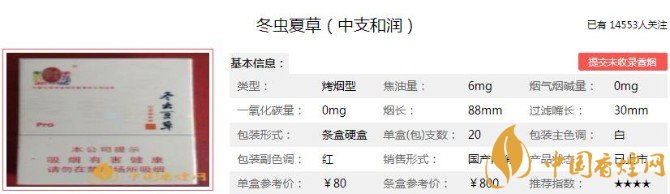 以上便是香煙網(wǎng)小編為大家介紹的關(guān)于冬蟲夏草中支和潤多少錢一包 冬蟲夏草中支和潤口感及參數(shù)分析的相關(guān)信息,看完之后大家是不是對于冬蟲夏草(中支和潤)這款香煙的相關(guān)信息更加了解呢。大家還想查詢更多的相關(guān)內(nèi)容歡迎點(diǎn)擊:冬蟲夏草香煙價(jià)格表圖(6種) 冬蟲夏草(和潤)香煙細(xì)支價(jià)格1200/條