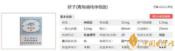 以上便是香煙網(wǎng)小編為大家介紹的關(guān)于青海湖多少錢一包 青海湖純凈側(cè)旋香煙價格及圖片介紹的相關(guān)信息,看完之后大家是不是對于嬌子(青海湖純凈側(cè)旋)這款香煙的相關(guān)信息更加了解呢。大家還想查詢更多的相關(guān)內(nèi)容歡迎點擊:嬌子青海湖天空之鏡的價格 煙嘴鏤空六邊形設(shè)計新穎