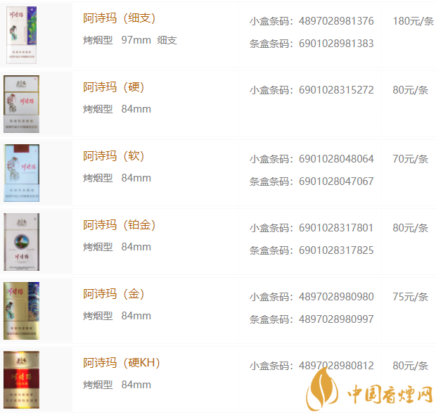 2020年阿詩(shī)瑪香煙價(jià)格表圖