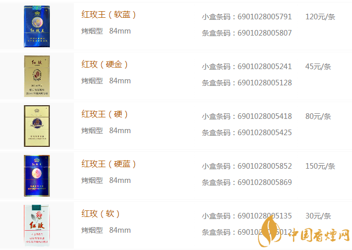 紅玫煙圖片及價格表2025