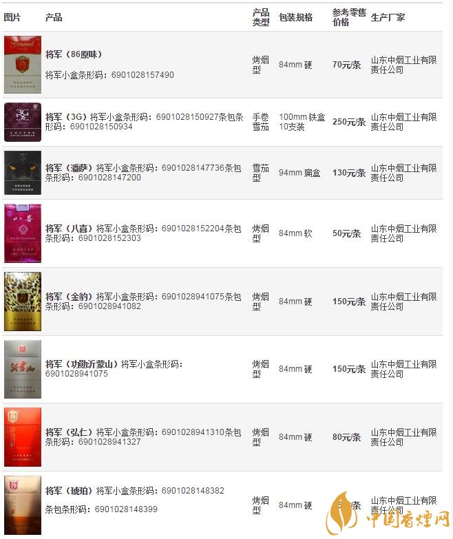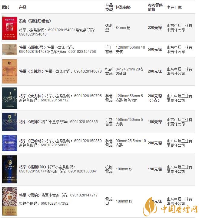 泰山將軍煙種類(lèi)價(jià)格與圖片大全